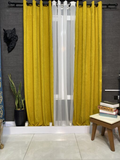 پرده آماده شانل زرد دورو هست و هر دو طرف هر قابلیت استفاده ازدارد. در هر بسته از پرده آماده شانل زرد یک عدد پرده دوخته شده در اندازه ۲۸۰×۱۴۰ سانتی متر آماده ارسال فوری می باشد. در حالت چین دار هر تکه پرده ۶۰ تا ۸۰ سانت را کاور میکند. این پرده ها پانچی هستند و به راحتی نصب می شوند. پرده های شانل دورو هستند و هر دو طرف قابل استفاده می باشد.حلقه های پانچ پرده ها از جنس پلاستیک و مشکی رنگ هستند. این پنل ها قابلیت شستشو در ماشین و اتوپذیری راحت را دارا می باشند