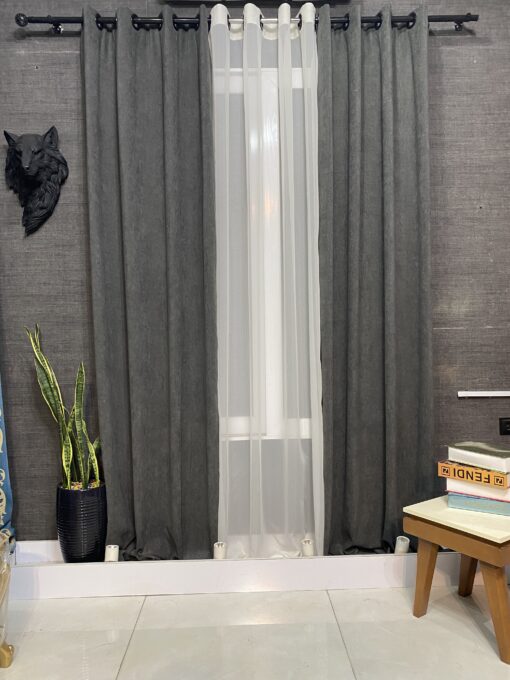 پرده اماده شانل رنگ طوسی تیره