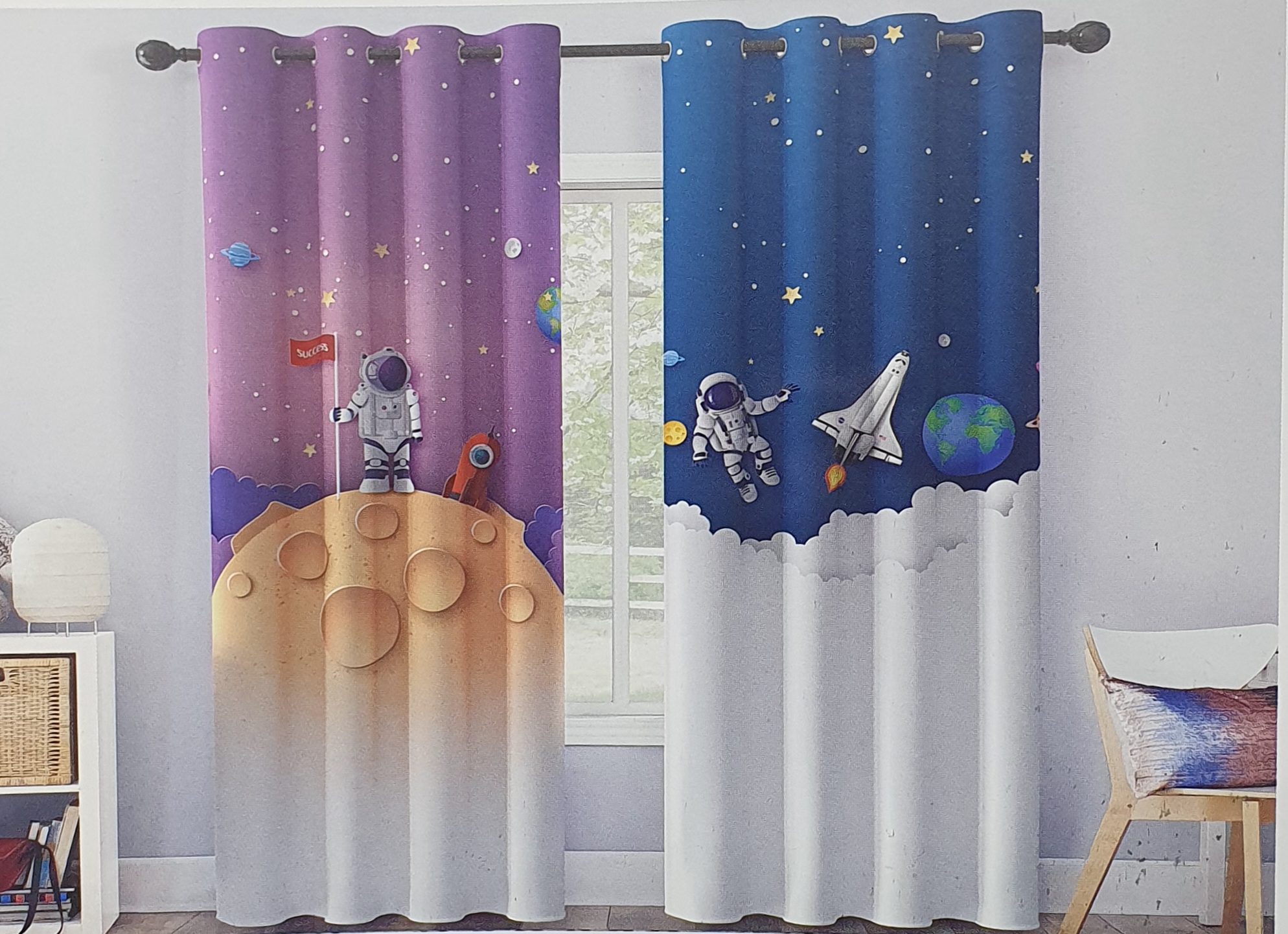 پرده کتان چاپی اتاق کودک طرح فضانورد ۷