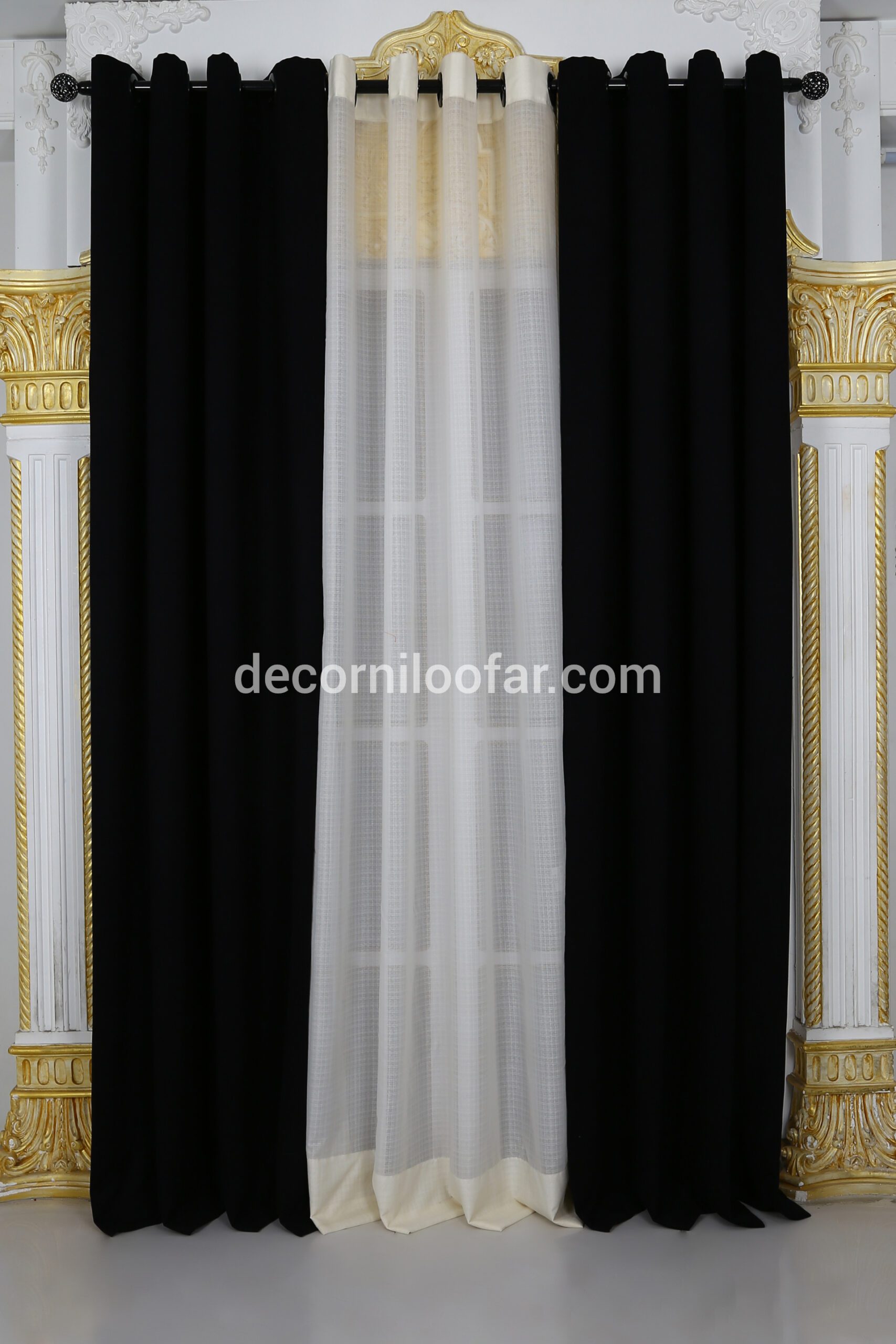پرده آماده کتان دیاموند مشکی