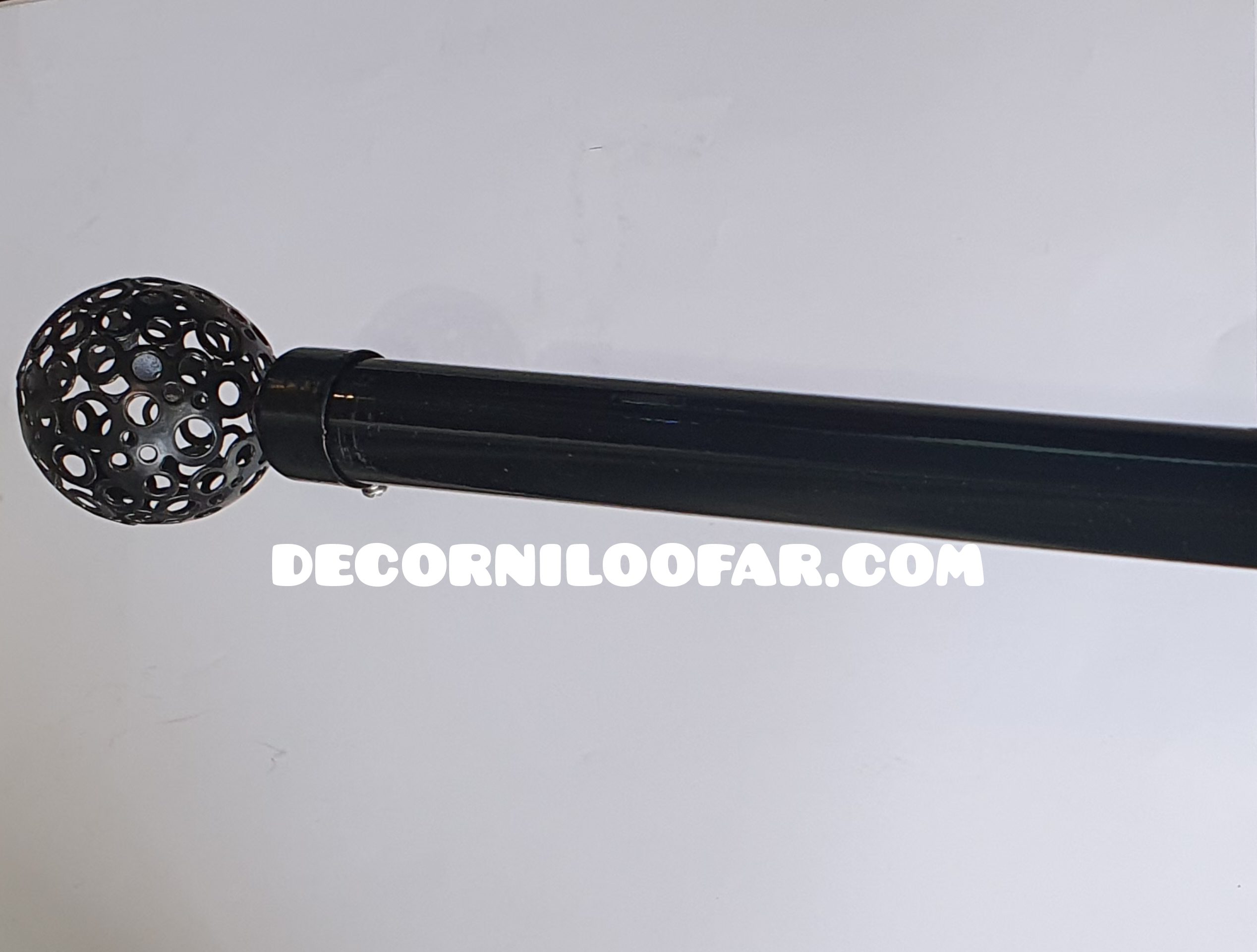 میله پرده ( چوب پرده) دارای کیفیت عالی و رنگ مشکی می باشد که با حلقه های پانچ پرده ها که مشکی هستند مطابقت رنگی دارند. قطر هر میله بین ۲.۵ تا ۲.۸ سانتی متر است .