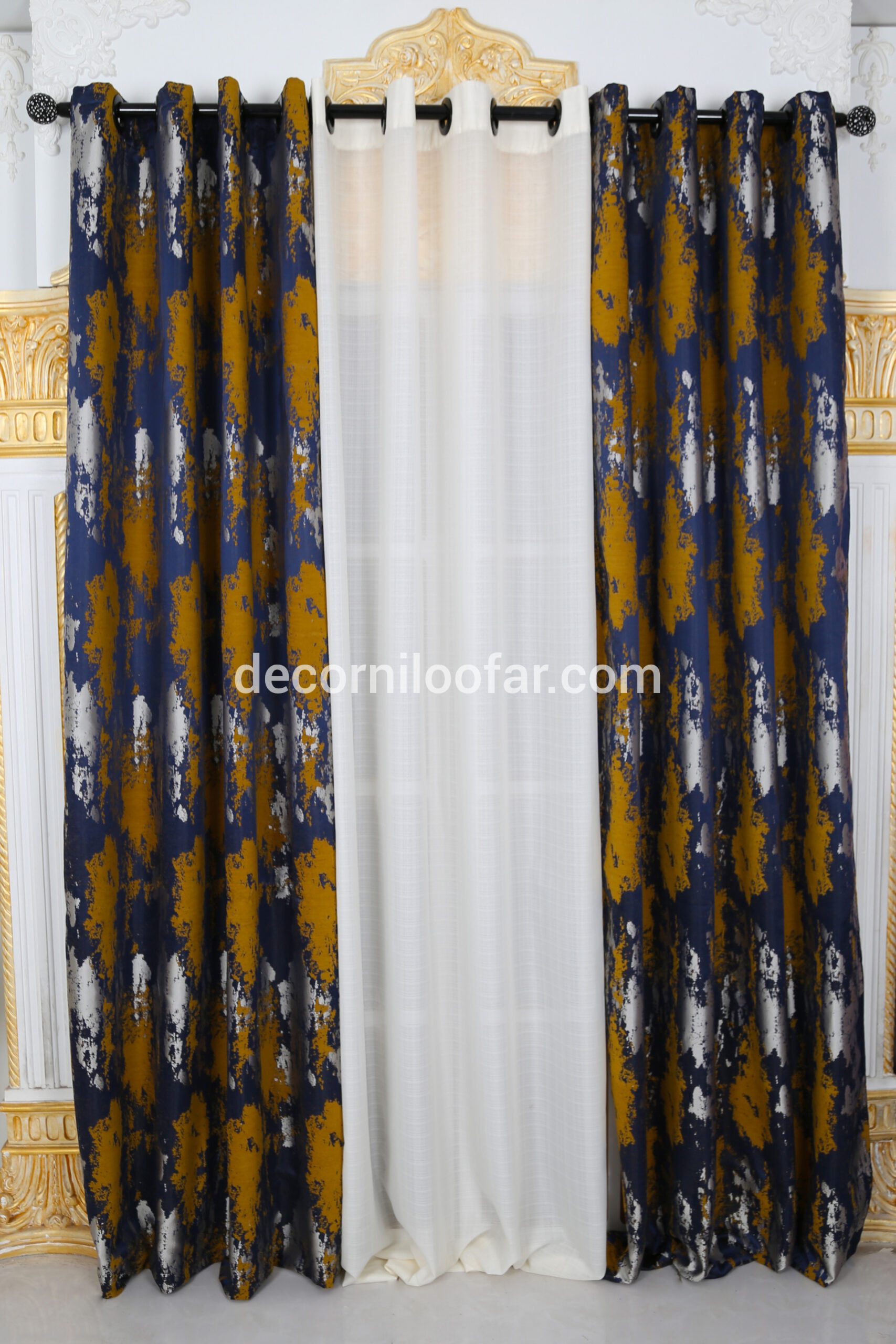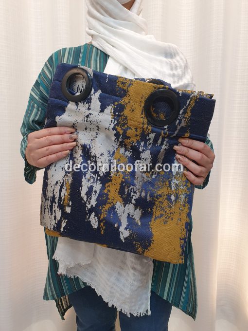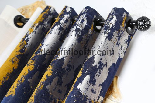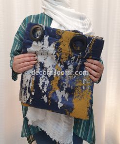 پرده آماده پتینه شانل سورمه ای خردلی